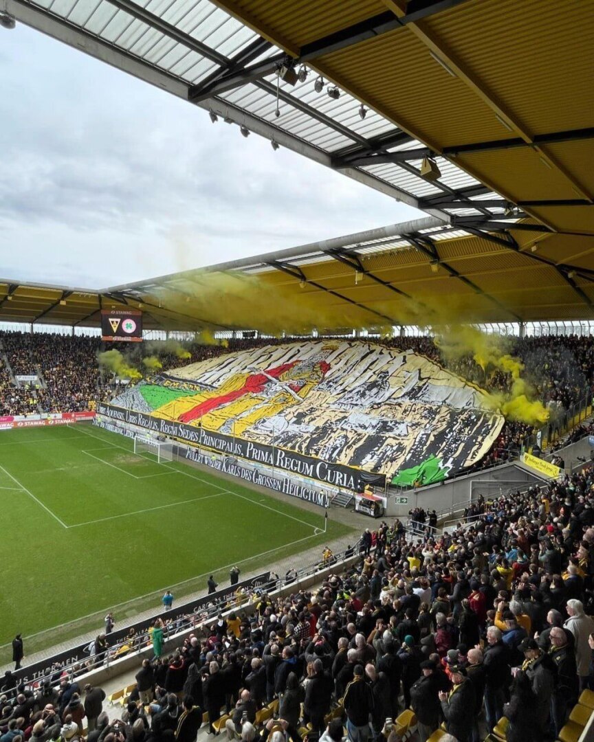 Почти 23 тысячи зрителей и крутой перформанс от ультрас на матче 4-й лиги Германии Алемания Аахен - Рот-Вайс Оберхаузен.