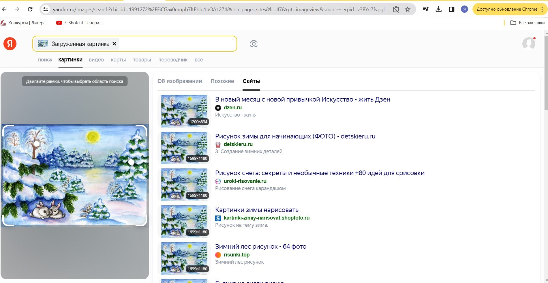 Пока жду ответа, запускаю в сети поиск аналога этого «детского рисунка» при помощи вот этого яндексовского ресурса: https://yandex.ru/images/. Так и есть! Картинка взята из интернета.