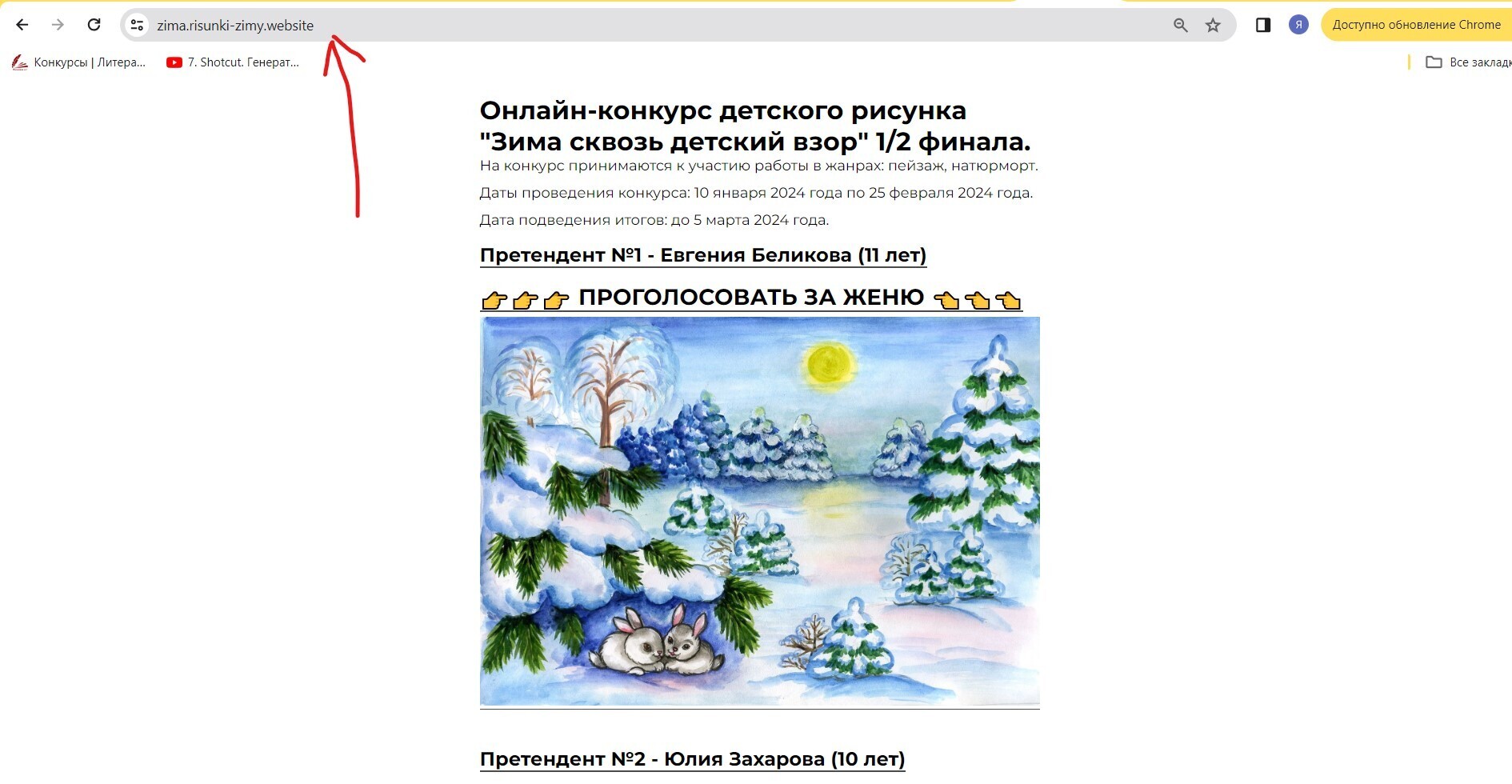 Перехожу по ссылке. Вижу работу, имя ребенка. Пытаюсь отдать свой голос.
