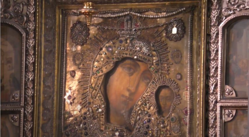 Центральное место занимает икона Божьей Матери Казанской, которая считается одной из самых почитаемых в России. Ее светлая и изящная копия, увенчанная золотой резной рамой, умиротворяла и заряжала нас положительной энергией.