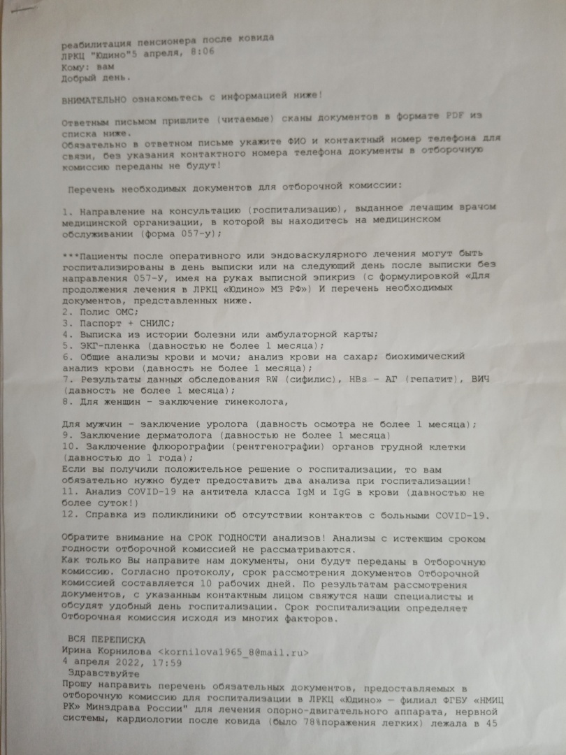 Моё лечение оформлялось по направлению нашего терапевта. Необходимо собрать все анализы и справки для комиссии. Последним сдаётся результат на наличие COVID-19 (действие справки 3 суток). Документы можно отвезти нарочно или отправить по электронной почте. Комиссия рассматривает все ваши документы в течение месяца и принимает решение о вашей лечении.