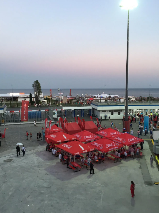 Футбол проходил на стадионе Фишт, который расположен в Олимпийском парке, и мы остановились в этом районе.