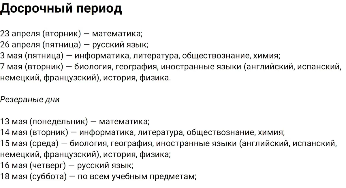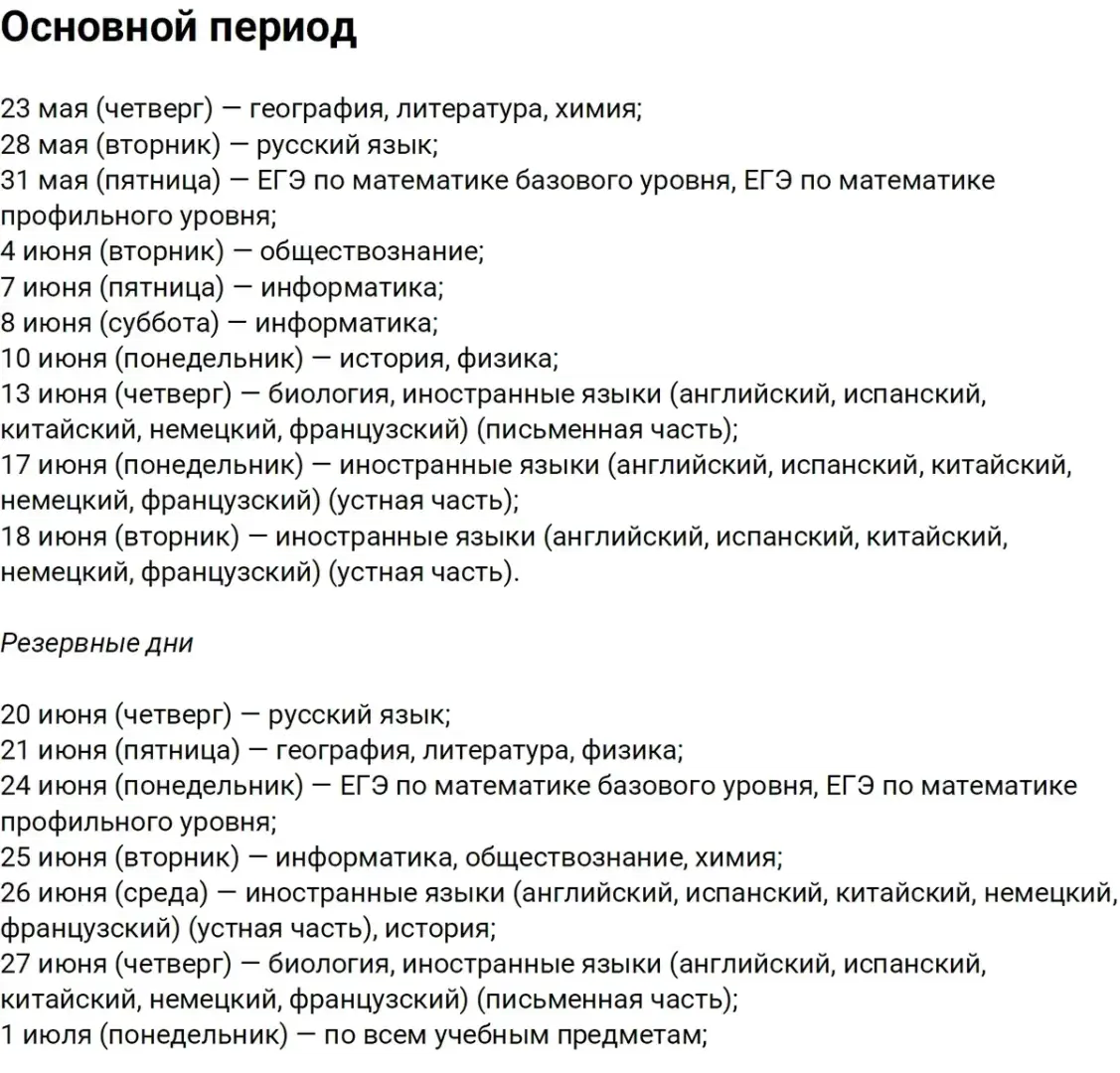 В 2024 году в расписании ЕГЭ не будет существенных изменений.