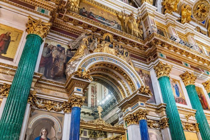 Немного истории. Построенный в XIX веке, Исаакиевский собор представляет собой гармоничное сочетание различных архитектурных стилей. Его фасад украшен колоннадой, на вершине которой возвышается золотая статуя архангела Гавриила, олицетворяющая покровительство над Санкт-Петербургом.