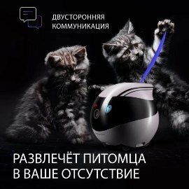По сути имеем передвижную видеокамеру с двусторонней голосовой связью, Хорошее качество видео. Дополнительные функции в виде лазерной указки или возможности издавать звуки некоторых животных обязательно привлекут внимание вашей кошки. Так же есть датчик движения, в результате срабатывания которого вы на свой мобильный можете получить сообщение о несанкционированном движении в квартире