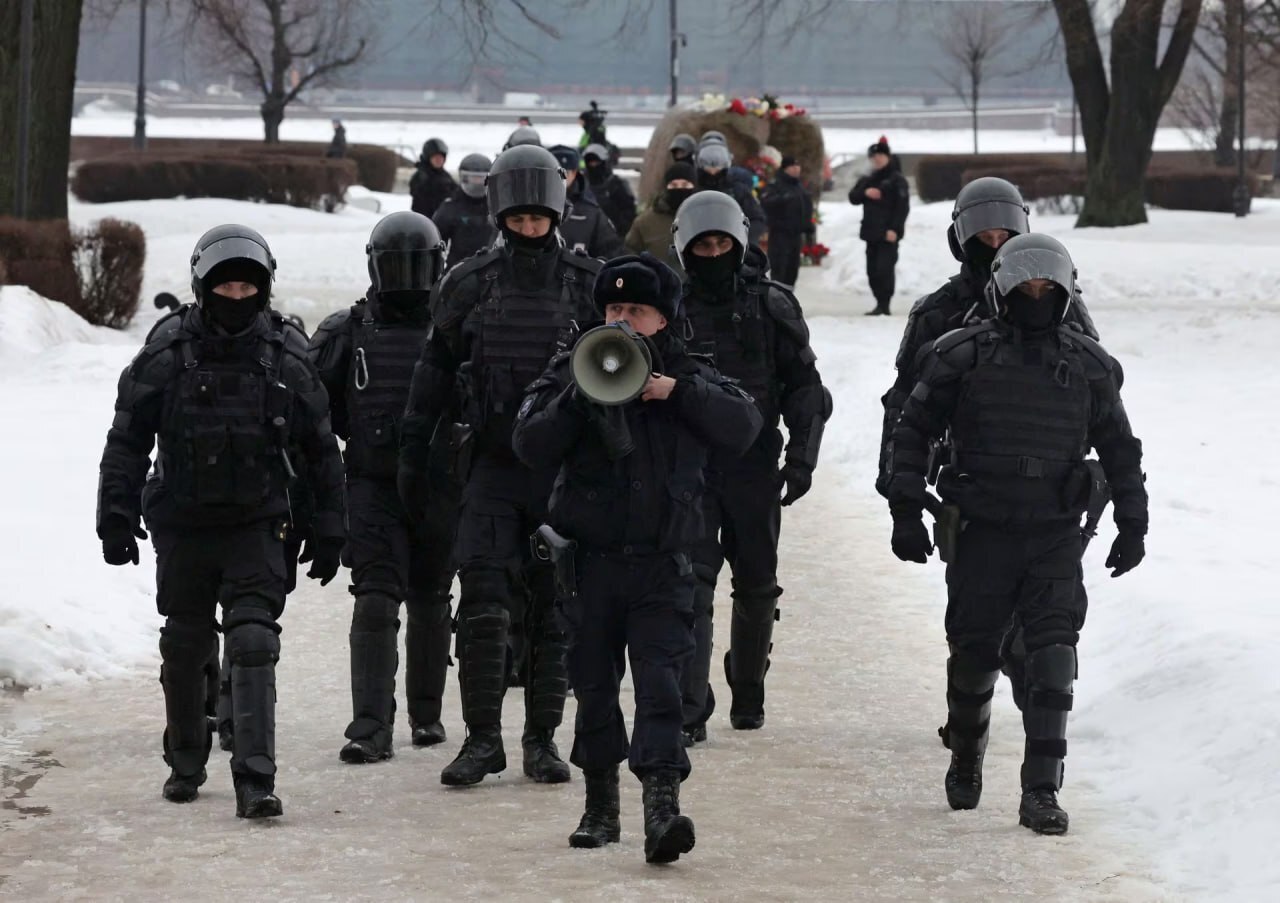 Фото - Сотрудники полиции задерживают людей во время митинга в память российского оппозиционера Алексея Навального возле памятника жертвам политических репрессий «Стена скорби» в Москве, Россия, 17 февраля 2024 года. REUTERS/Stringer