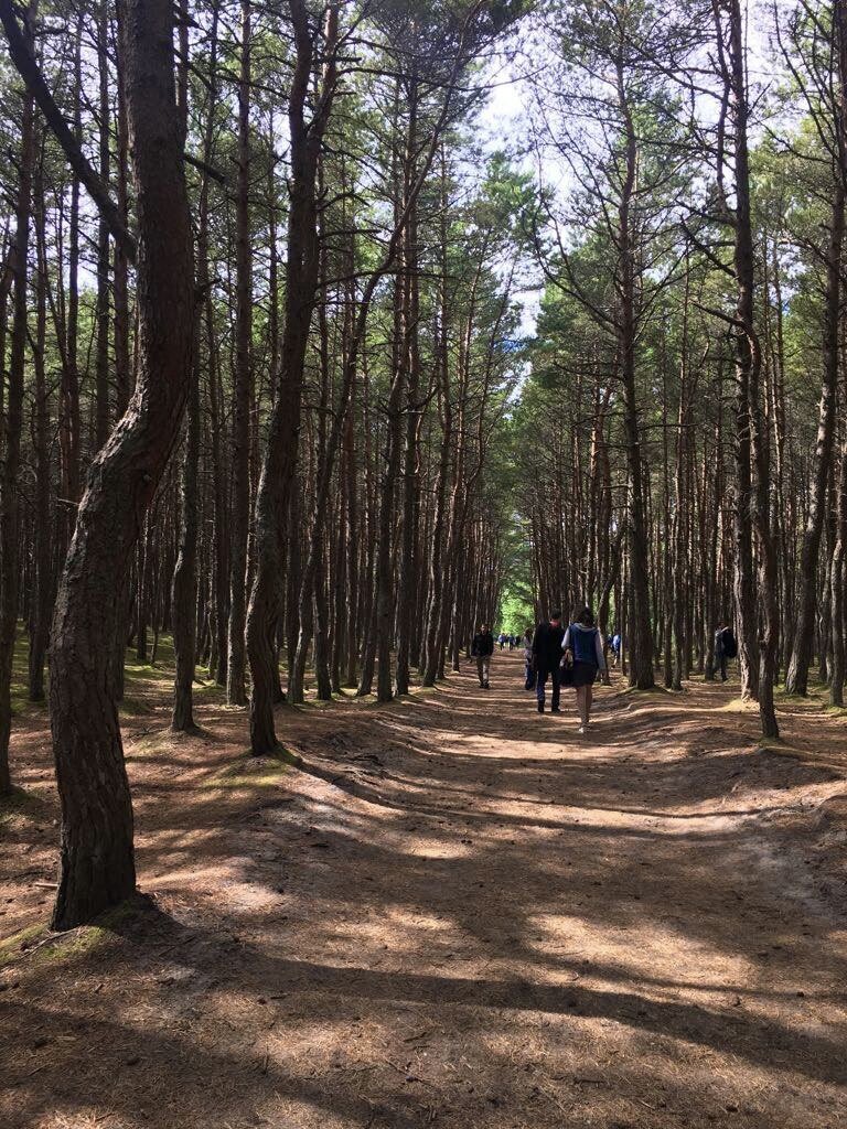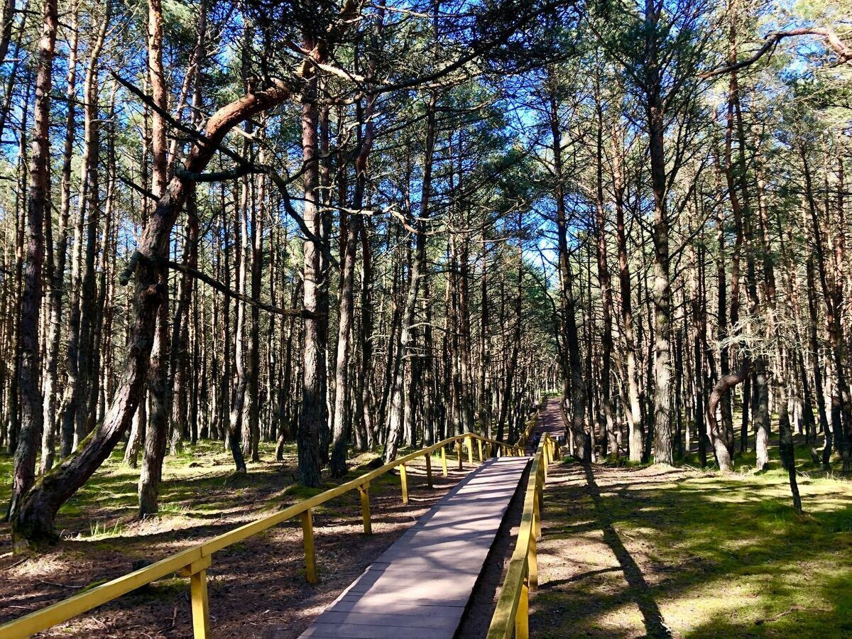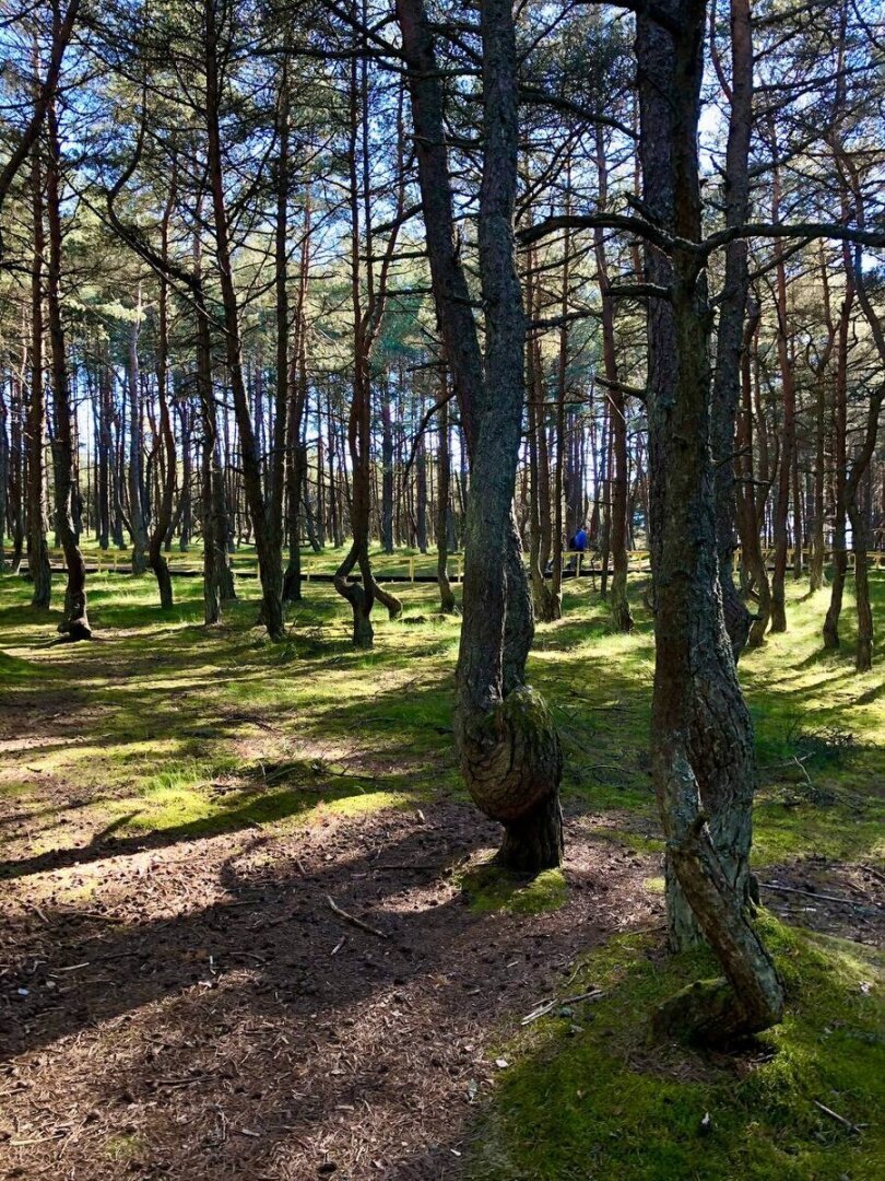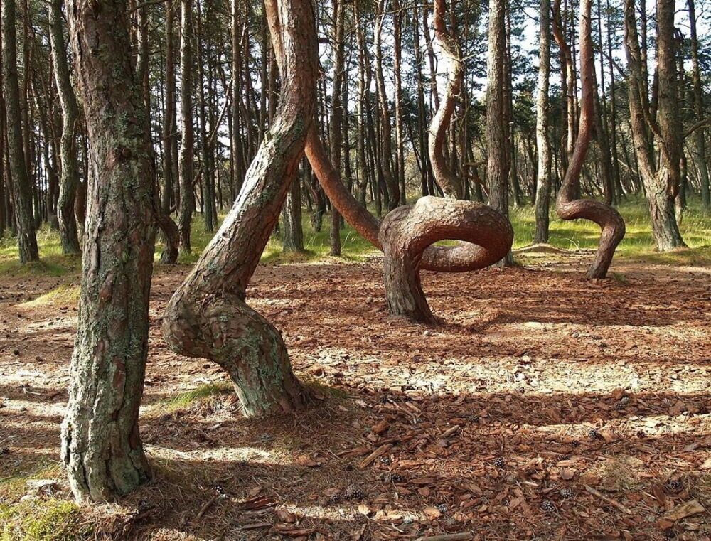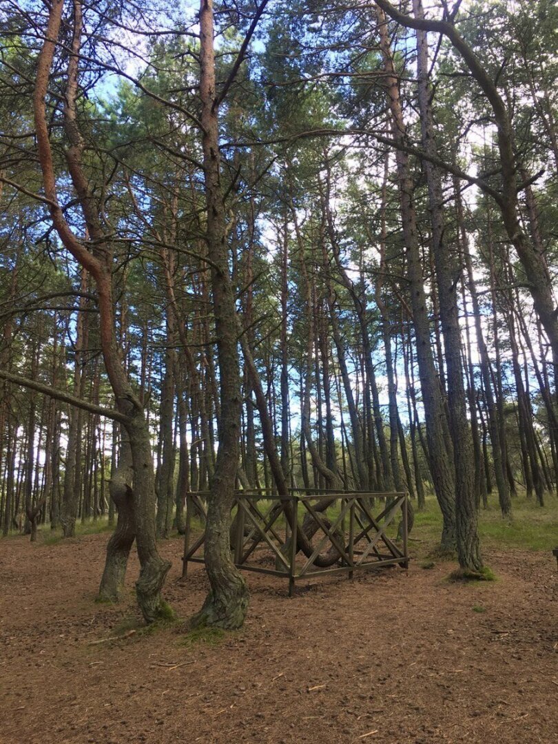 Давайте вернёмся к Танцующему лесу! Чем он так знаменит и в чём его особенность? Это кусок Куршской косы с соснами, длина его всего 800 метров. Деревья, именно на этом участке забавно изгибаются, а некоторые, вообще скручены в кольца. Почему это произошло? По сей день, на эту тему спорят биологи, историки и даже подключились экстрасенсы! Вот уж без них никуда!
