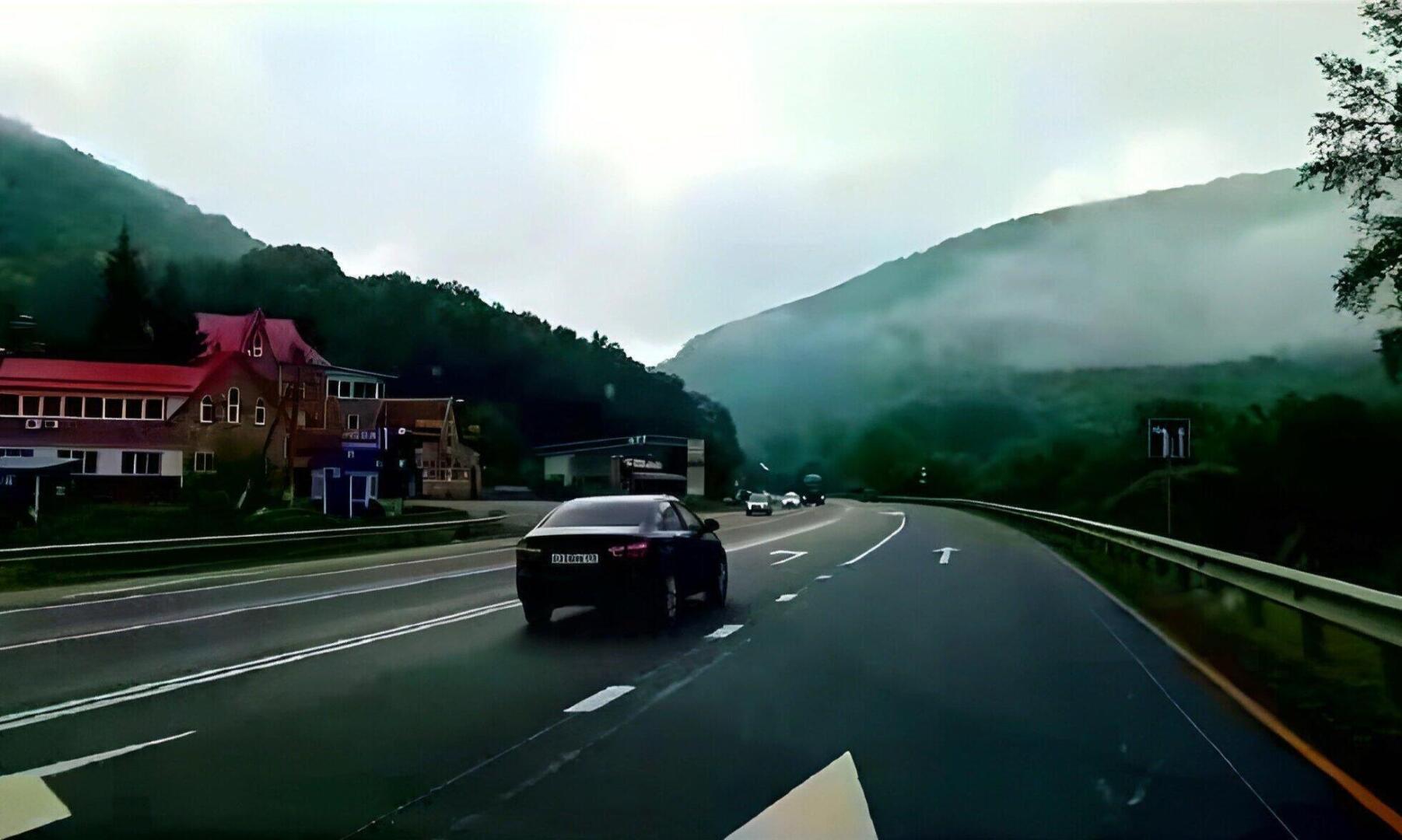 Выехали рано, в 5 часов утра. И очень удачно: не попали ни в одну пробку. Дорога была замечательной. Увидели потрясающее зрелище: утренний пар над горами.