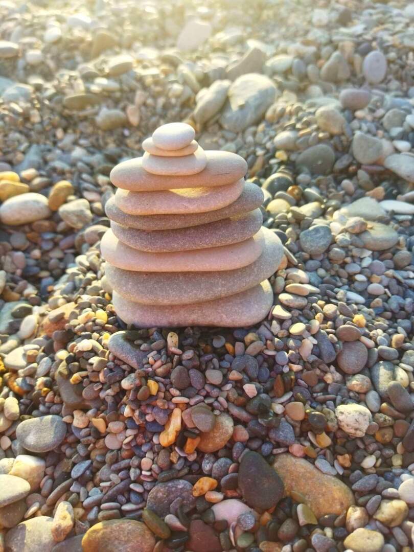 Видели много желающих вскарабкаться на вершину горы, туда ведут несколько тропинок. А у подножия горы течёт небольшая речка Тешебс, которая впадает в море. В этом году она слегка пересохла и можно было перейти через неё к горе по камушкам, даже не замочив ноги.