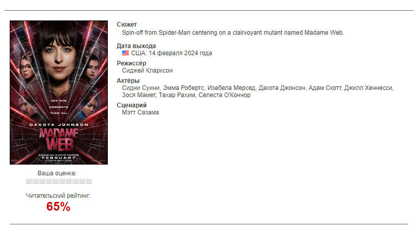 Ну, мне показалось, это будет жадностью с нашей стороны — показывать четыре истории происхождения в одном фильме. Это не слишком-то справедливо. Ну, слушайте, в первую очередь это фильм о Мадам Паутине. Но я надеюсь, что это сработало как приманка. И считаю, что та история происхождения девчонок, которую мы показали, окажется достаточно прозрачным намёком на то, кем они являются.
