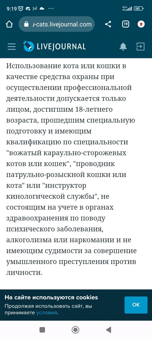 А если Вам меньше 16 лет, то Вы не имеете права применять кошку для поиска наркотических и психотропных препаратов