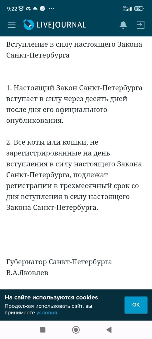 Хотя для меня это был Проект закона О содержании котов (и кошек) в городе Санкт-Петербург