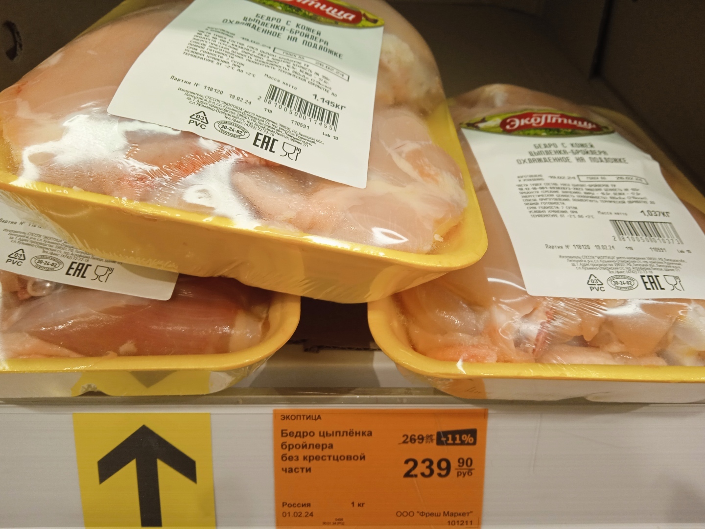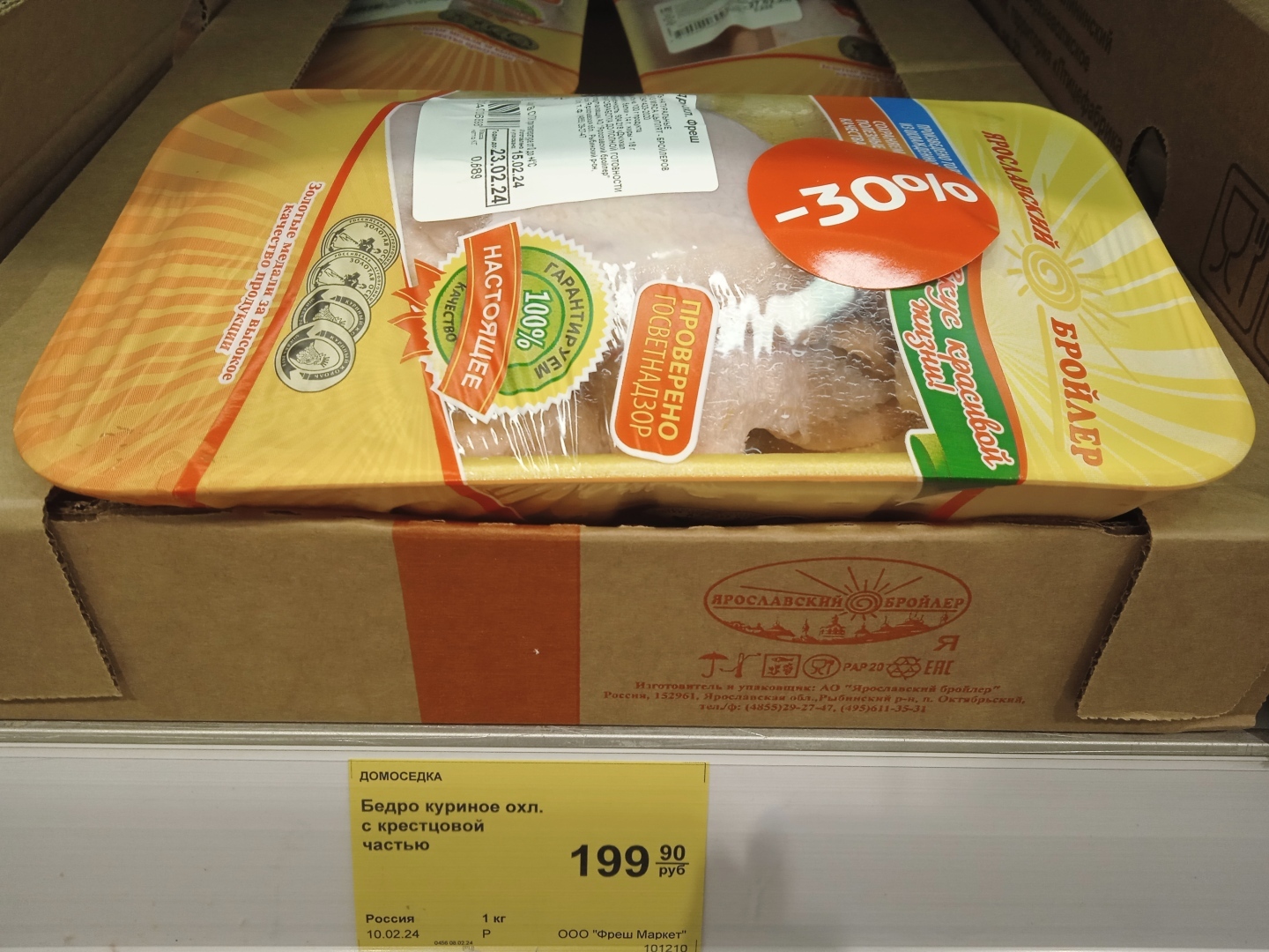 Для кого вышеупомянутые бёдрышки показались дорогими – не беда! Есть второй вариант – куриные бёдра от "Ярославского бройлера"! Со скидкой они обойдутся вам всего 140 рублей за кг. Но я их если и покупаю, то только для приготовления первого блюда. Слишком много там костей по сравнению с мясом.