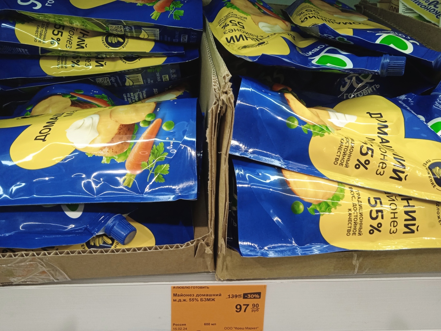 Меня сегодня приятно удивила и цена на майонез "Московский домашний": меньше 100 рублей за упаковку в 600 мл.
