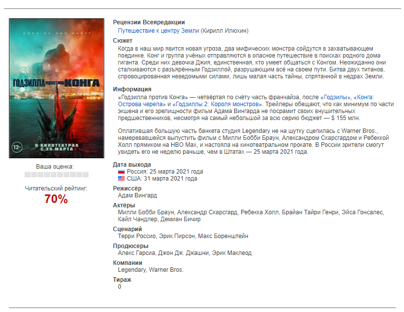 Трейлер к фильму Годзилла против Конга (2021)