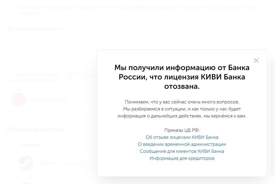 Центральный банк отозвал лицензию у QIWI-банка. Я тоже пострадал...