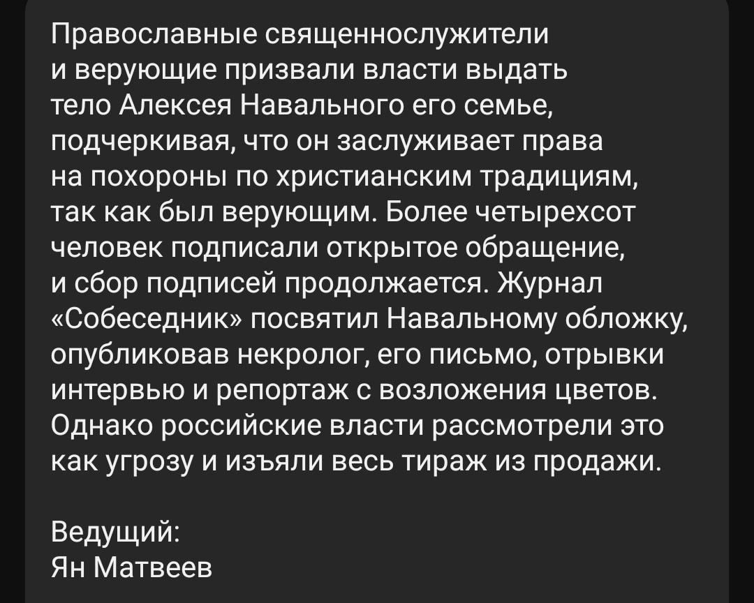 Видимо за такой выпуск западные друзья теперь уже вдовы усопшего, обещали хорошо заплатить, а теперь и денег не получили, заработок на смерти Навального сорвался, опять же в расходы попали, а еще могут быть вопросы со стороны российских правоохранителей, о любви к иностранным агентам и зарубежным деньгам. Торговля Родиной на первых порах дело выгодное, но в последствии строго наказуемое. Таких примеров немало. Еще не все, компетентные люди почитают, почитают, а потом как возбудят дело по экстремизму. Бесплатный сыр, он только в мышеловке.