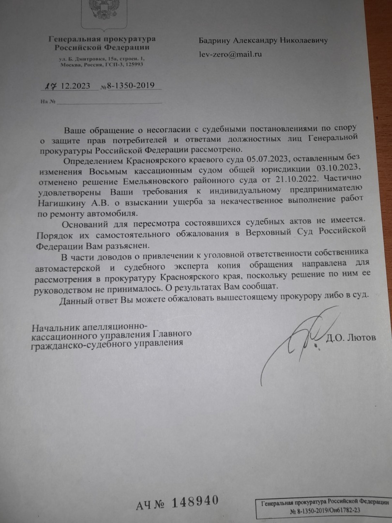 Согласно вышеизложенной информации хотелось бы верить,что подвижки по заявлению какие то идут.Но сейчас не об этом,а о Генеральной прокуратуре.Вчера , т.е. 21.02.2024 года
