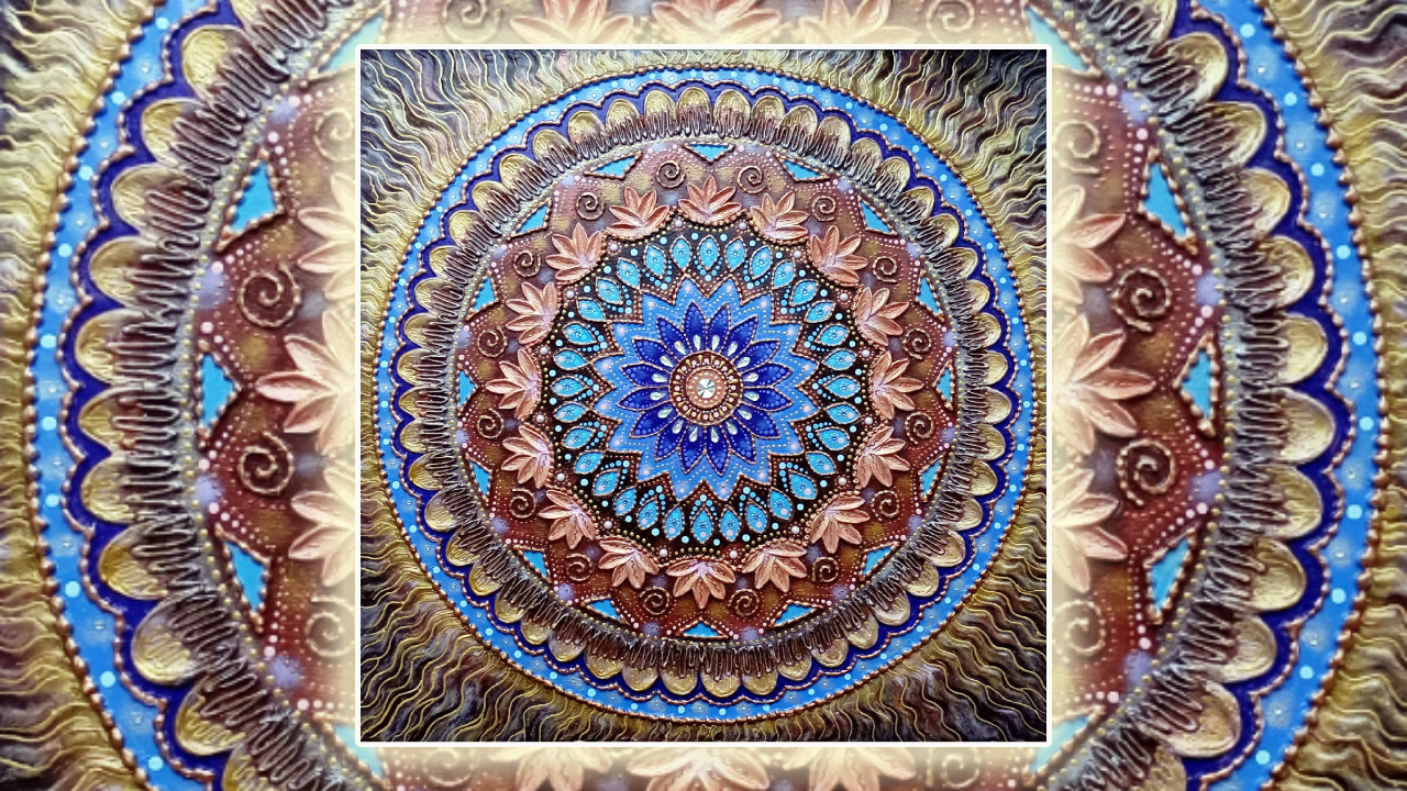 В этот раз я хочу предложить вашему вниманию очередную картину-мандалу. Это круговой рисунок, который имеет сакральный смысл.