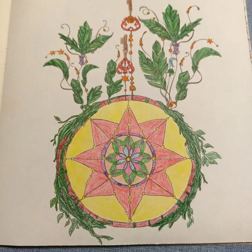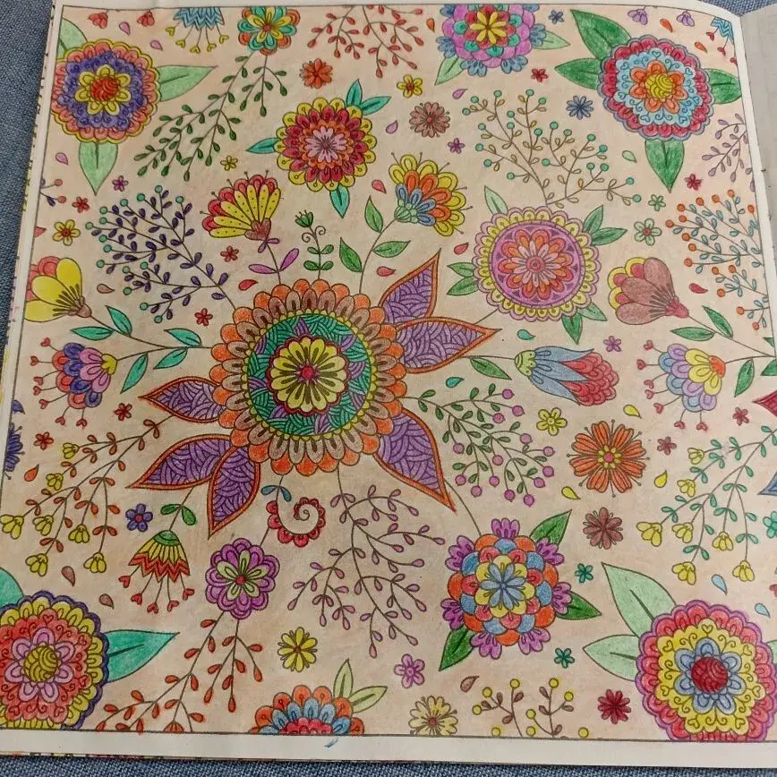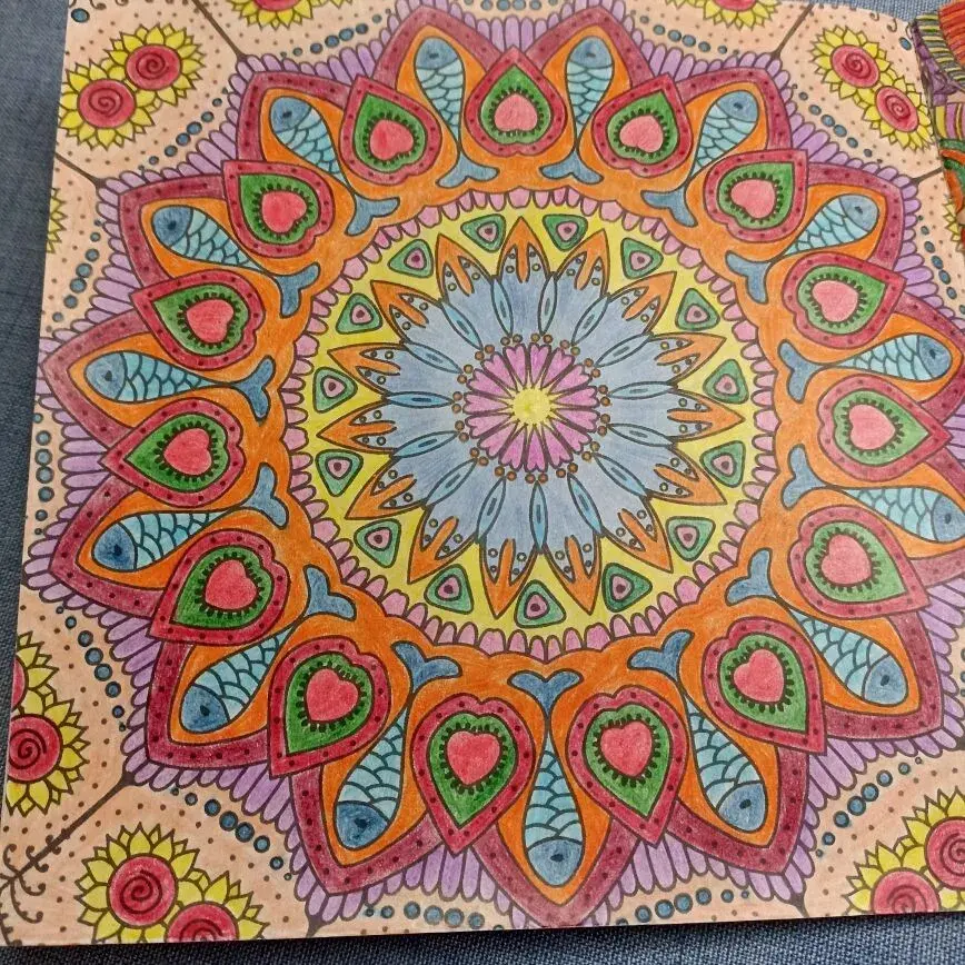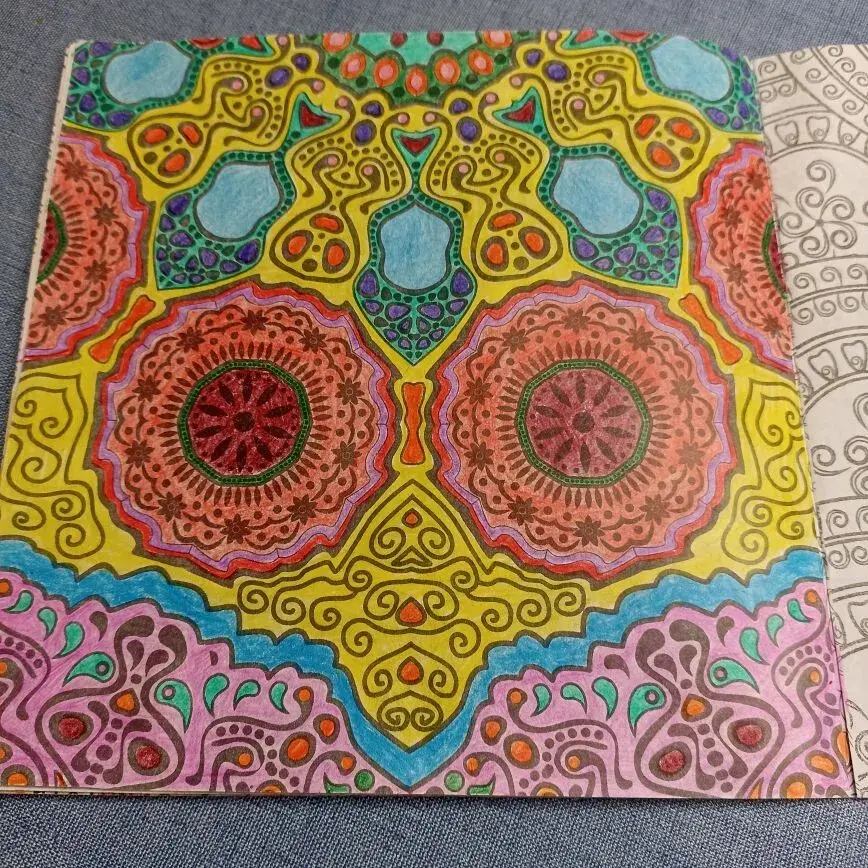 Так вот! Села я за свою раскраску с Озона. Первый рисунок меня не впечатлил. Даже как-то скучно было. Мелких деталей я не вижу после операции на глазах. А потом... Пошло-поехало. И так мне понравилось! Я поняла одну вещь - когда начинаю рисовать, то весь мир с бытовыми проблемами куда-то исчезает. Даже слух пропадает на время. Некий мини транс. Сидишь, малюешь и кайфуешь! На один рисунок уходит где-то минут 40 (рисовала не каждый день, где-то раз в неделю). А потом такое состояние..необыкновенное. Вроде вечер, день прошёл, а такое ощущение, что проспал часов 12 кряду и организм полностью отдохнул. От головной боли не остаётся ни следа. Полное восстановление душевных сил!