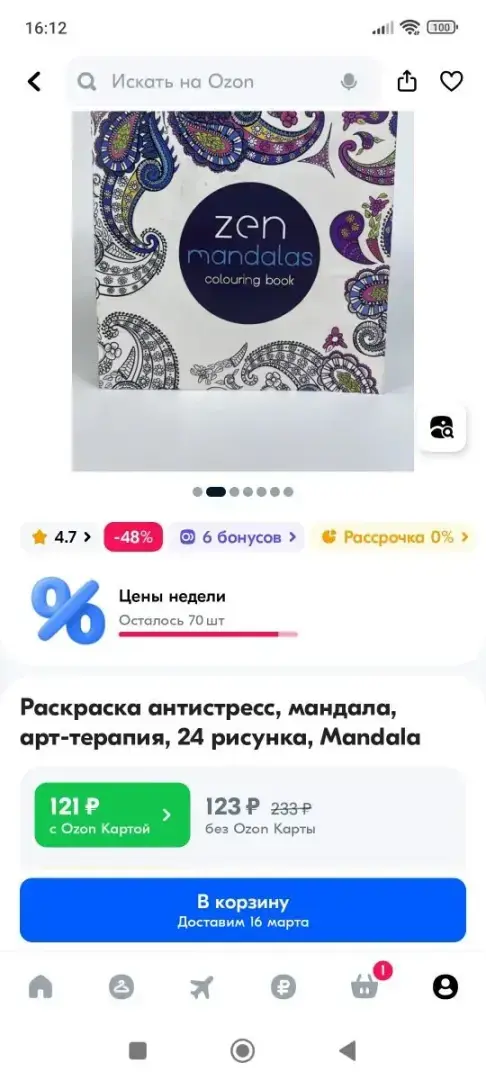 Как-то я ковырялась на Озоне, искала раскраски антистресс. Такие существуют! Для пробы решила взять самую маленькую и дешёвую за 120р. Единственное, что смогла прочесть, так это слово "мандала". Ну думаю, наверное что-то индийское))) Должно от депрессии помочь! Я не сильна в этих понятиях, никогда не увлекалась духовными практиками, точнее пробовала, но ничего путного не вышло. Про предназначение этих рисунков лучше спросить у моей знакомой Татьяны из Гвардейска, которая также пишет статьи на сайте. Она очень продвинутая в этой теме, увлекается нейрографикой. Я же пока только учусь)