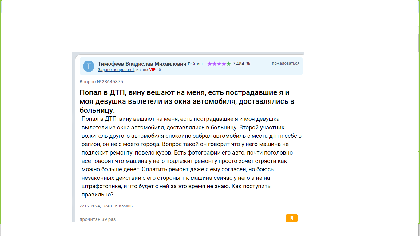 После того как юристы стали консультировать, пользователь уточнил очень важный момент. В консультации многие вещи имеют значение.