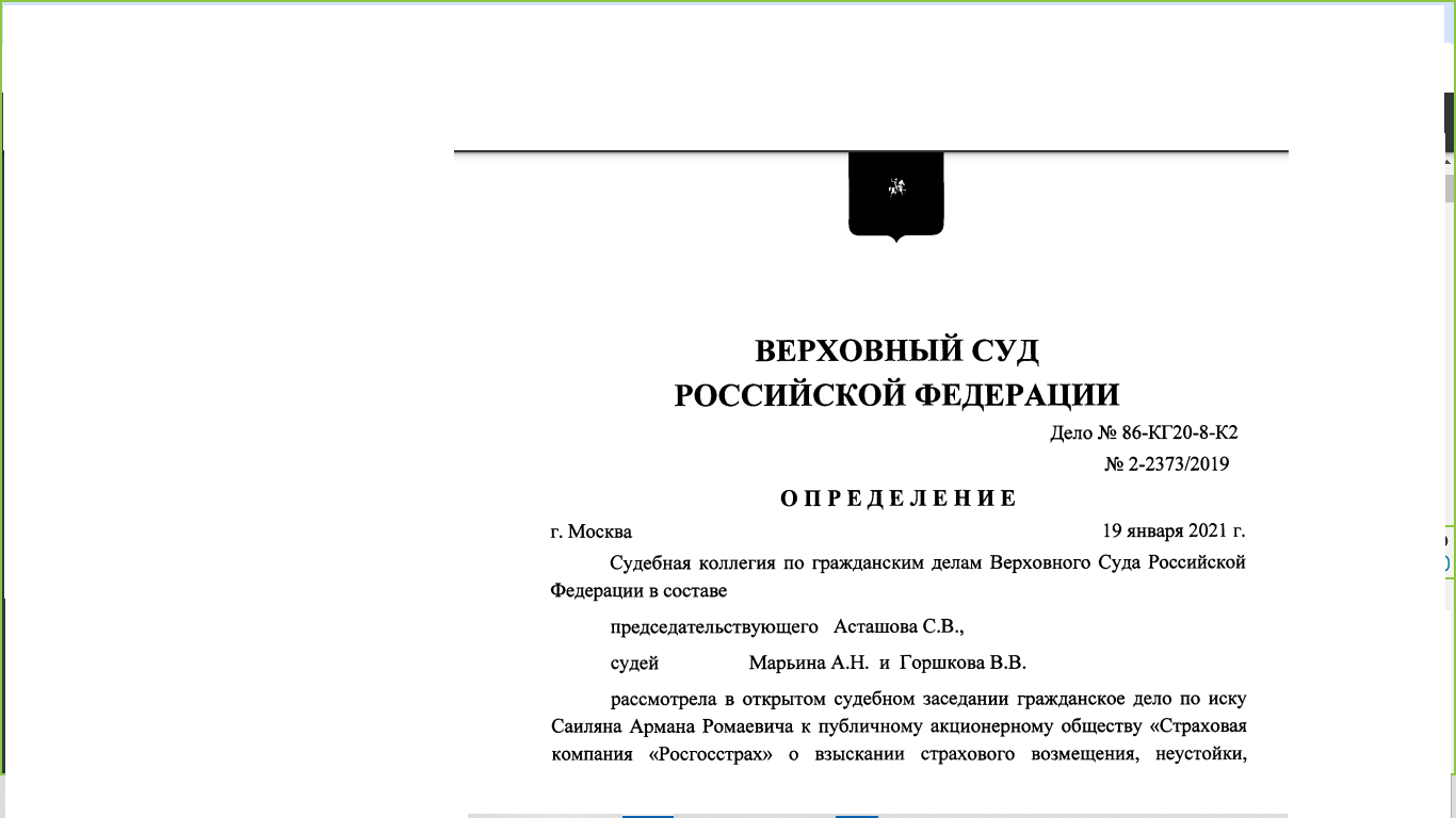 Но после того как Верховный суд РФ стал в своих решениях становится на сторону автовладельца, судебная практика резко изменилась. Вот одно из самых первых таких решений.
