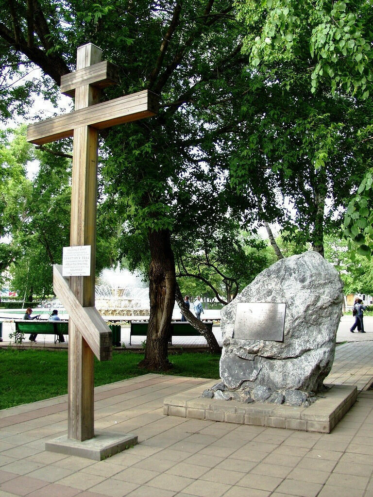 «25 лет назад в 1999 году на месте разрушенного Казанского кафедрального собора был установлен Поклонный крест и «Памятный камень»