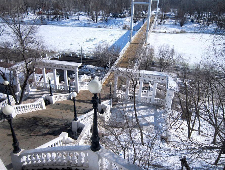 Наша экскурсия начнется на бульваре под названием «Беловка», откуда можно насладиться видом левобережья Урала - азиатской части города. Здесь каждый желающий сможет мгновенно перейти по мосту через Урал из Европы в Азию.