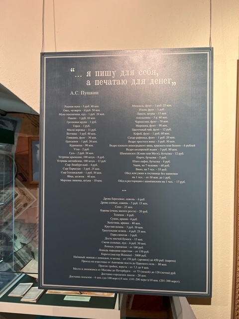 У нас некоторые любят давать обзоры на то, сколько что стоит в магазинах. Вот и А.С. Пушкин считал, что и сколько стоит: