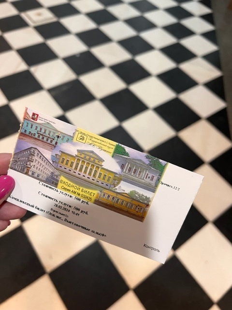 Стоимость посещения выставки к 225-летию Пушкина всего 500 рублей. Меня даже спросили, а нет ли у меня льготы. Я говорю: нет. Не знаю, к счастью или к сожалению, но цена не обременительна. Добраться до музея очень легко. Нужно выйти из станции метро "Кропоткинская" (выход в город № 1) и сразу повернуть направо, 5 минуток обычным шагом – и вы уже у дверей музея.
