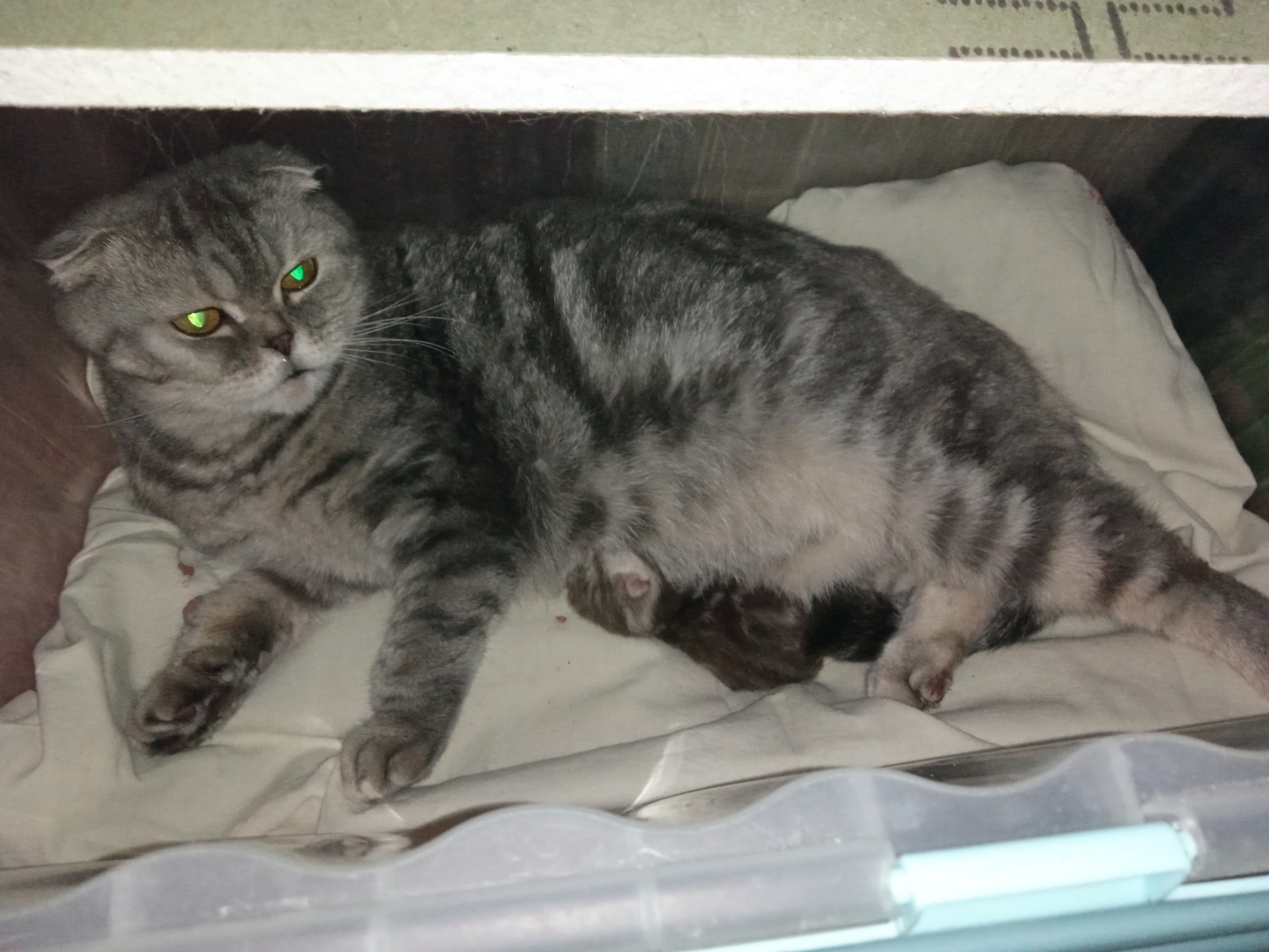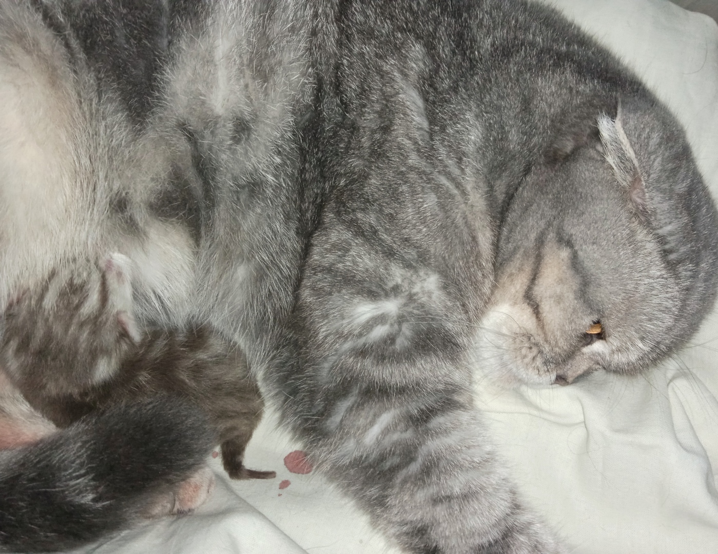 Кстати, кот как истинный отец, во время родов был рядом с роженицей и нежно мурлыкал. По всей видимости поддерживал морально.