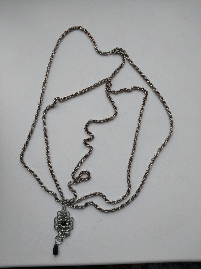 Отсюда я взяла идею сделать украшения в технике кольчужного плетения - сделала серьги и украшение на голову (если не ошибаюсь, оно называется тика).