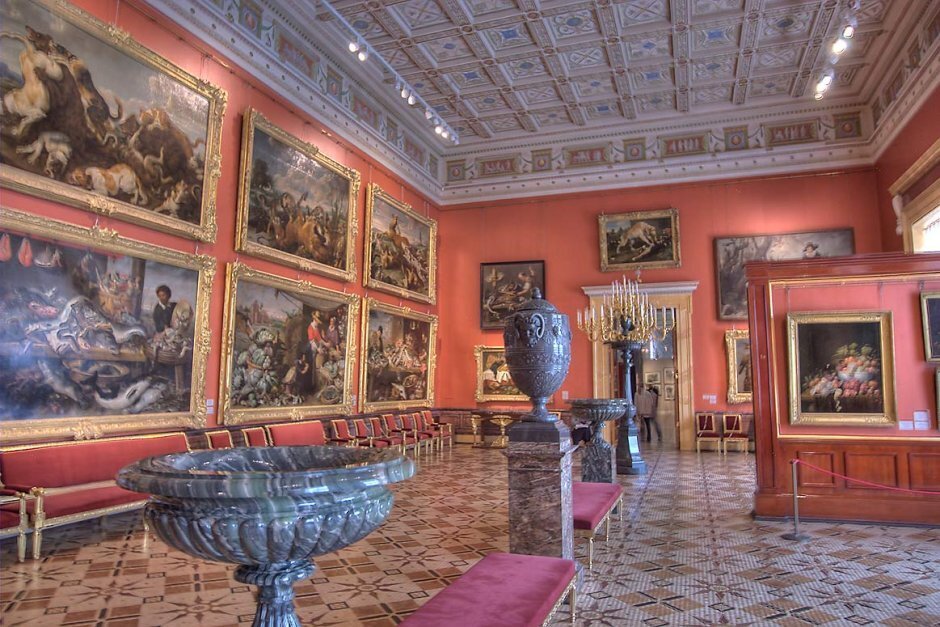 Залы, украшенные золотыми узорами, кристаллами и мрамором, погружают в атмосферу российской императорской истории. Здесь можно найти произведения искусства разных эпох – от древних времен до настоящего времени.