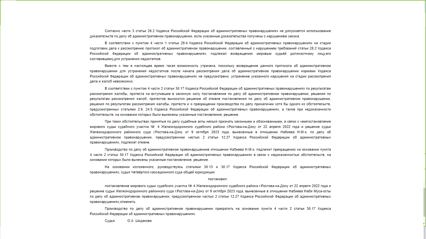 Кассационный суд отменил постановление по делу об АП и прекратил производство. Именно по этим нарушениям.
