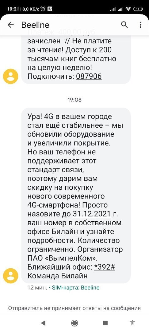 И снова готовьте поп-корн. Вспомнила тут одну историю, как воевала с провайдерами мобильной связи. "Билайн" – вне конкуренции. Усаживаемся и читаем, события от 2020–2021 гг.