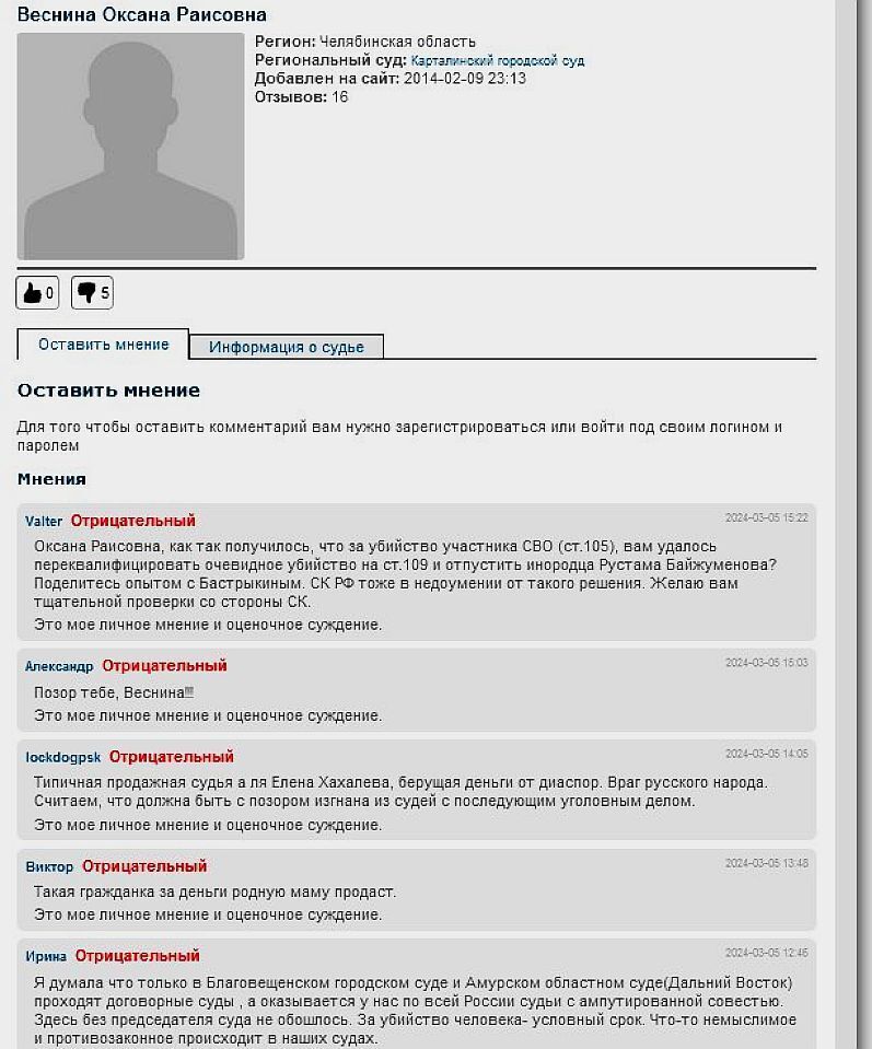 Фото судьи Оксаны Весниной, отпустившей убийцу на свободу, мгновенно исчезло с сайта «Судьи России».