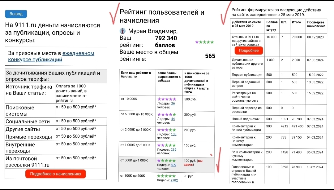 Теперь согласно рейтинга за 1000 дочиток положено от 100 до 500 рублей!