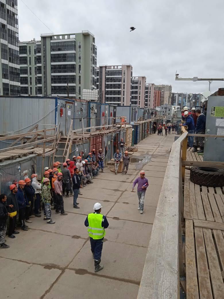 Обычное утро на стройке, каждый день все работники проходят перекличку, как в школе читают имя и фамилию а в толпе кто-то кричит Я хотя хз тот человек ответил или нет, ну это в некоторых случаях, а обычно в многих организациях в лицо знают работников. После все работники получают инструмент и материал и идут пахать . Суть хотел показать и рассказать как проходит утренняя время на стройке.