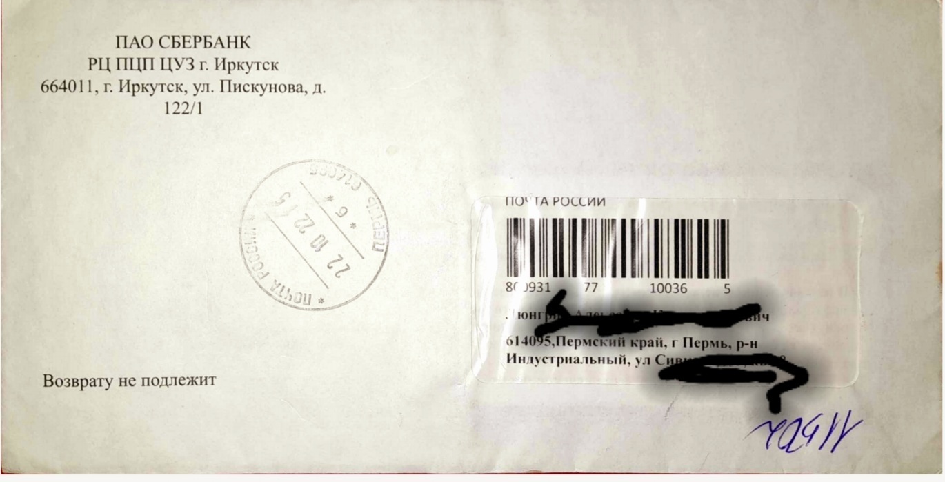 Такое письмо было закинуто в почтовый ящик, надо полагать, от Сбербанка.