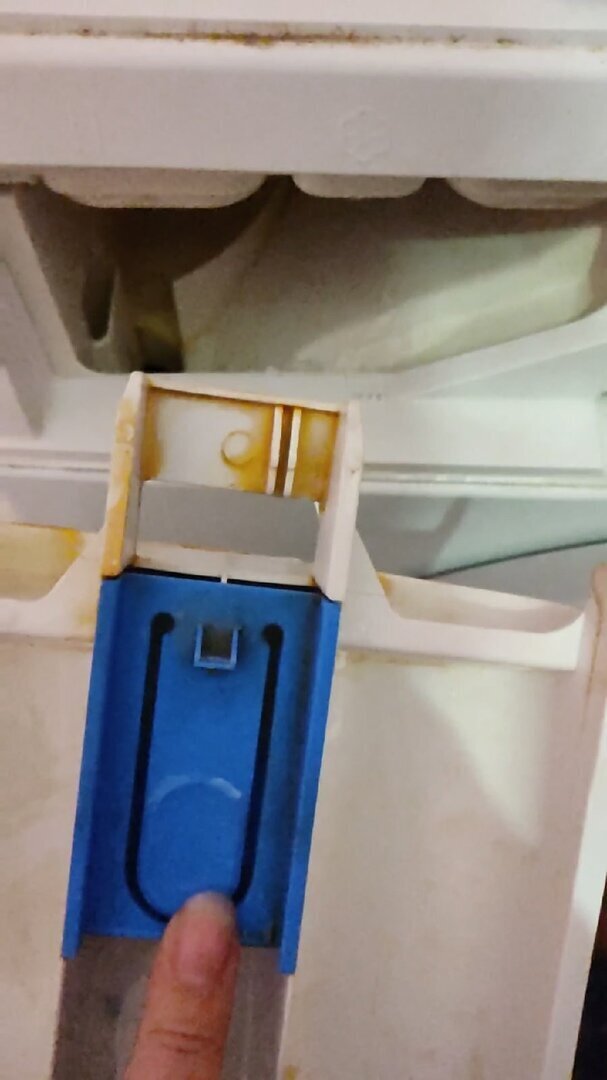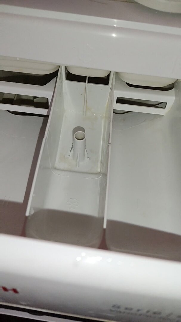 Отсек отодрать можно только наждачкой, что повредит стиральную машинку и та обрастёт коррозией.