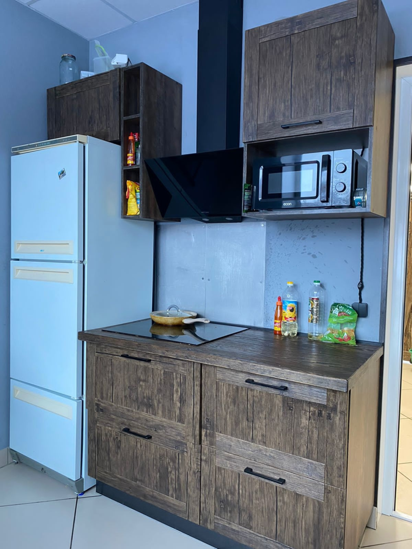 И тут за дело взялся отец. Сбили всю краску с того места, где была плитка, сделали частую насечку на стене. Замешали цементный раствор с жидким стеклом. И работа понеслась. Вот уложен предпоследний ряд. Остался последний. А тут упс – мешает настенный шкаф. Не влезает целая плитка между шкафом и предпоследним рядом.