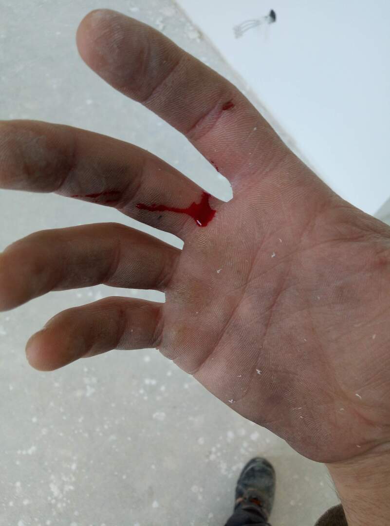 Вот так и случается когда работаешь не по технике безопасности, нужно было поднять вот этот металлический лист на 9эт и закрыть шит этажный, нужно было надеть защитные перчатки, но мне казалось что этот лист лёгкий и хотя у него режущие края, он не повредить мне, как оказалось я ошибся и поплатился за это))), так что советую все время соблюдать технику безопасности 🦺 и берегите себя.