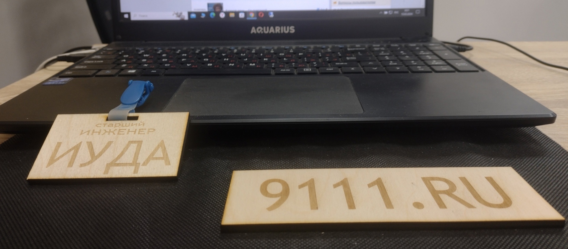 Повезло, что макет был небольшой и гравировка прошла быстро. Я закончил работу, быстро достал заготовки из станка и вернулся в соседний кабинет, чтобы собрать бейджик.