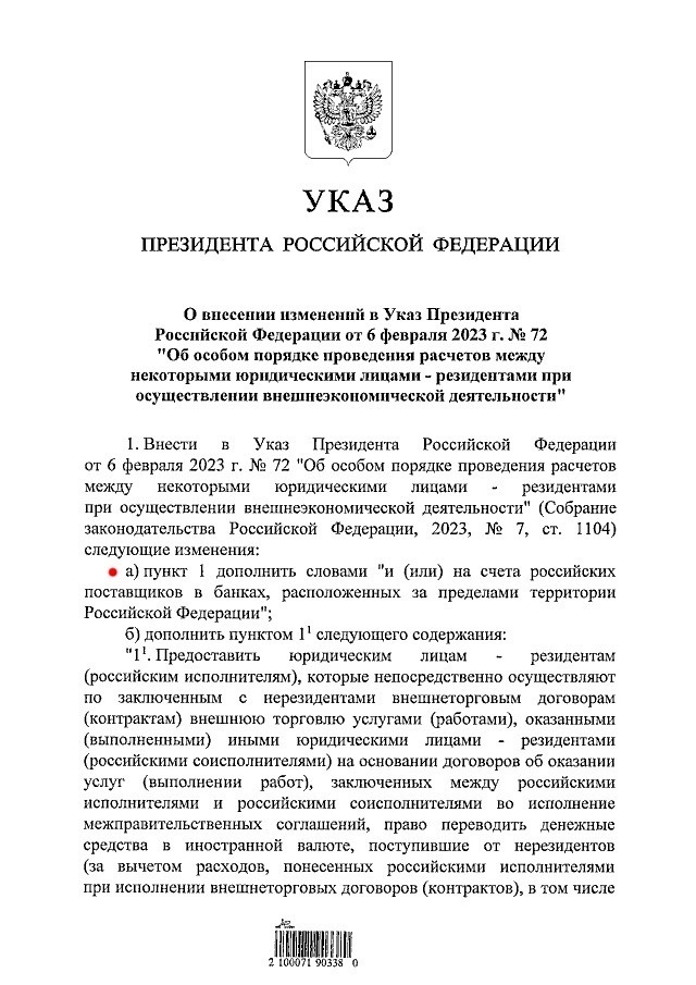 На основании Указа от 06 февраля 2023 г. № 72, ежемесячно из России на запад, выводятся капиталы в огромных размерах, однако это публично не обсуждается.