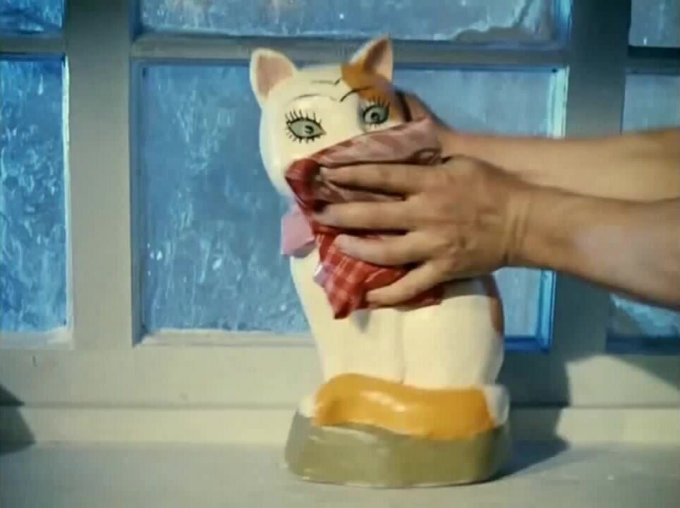 Кроме того, эта же кошка появляется в фильме "Любовь и голуби", украшая квартиру Василия Кузякина.