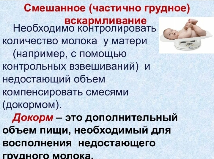 Но есть и такое понятие как смешанное вскармливание. Это когда у мамы либо не хватает молока, или молоко не достаточно питательное ну или бывает его попросту нет. Тогда врач педиатр прописывает смесь. Но в панику вдаваться не нужно. Не нужно постоянно пичкать малыша смесью. Достаточно покормить грудью и после этого дать бутылочку. Но лучше своё сокровище показать ещё другим специалистам и тогда уже принимать решение.