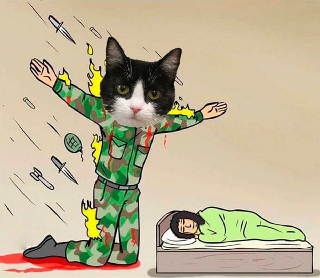 Кот спас хозяйку во время обстрела, когда лег ей на голову.