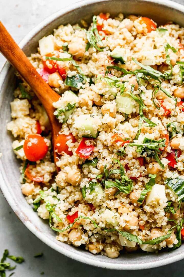 Салат из киноа с овощами🥙Простой салат из киноа с овощами и сыром - идеальный гарнир для курицы, лосося или стейка. 30 минут и готово!