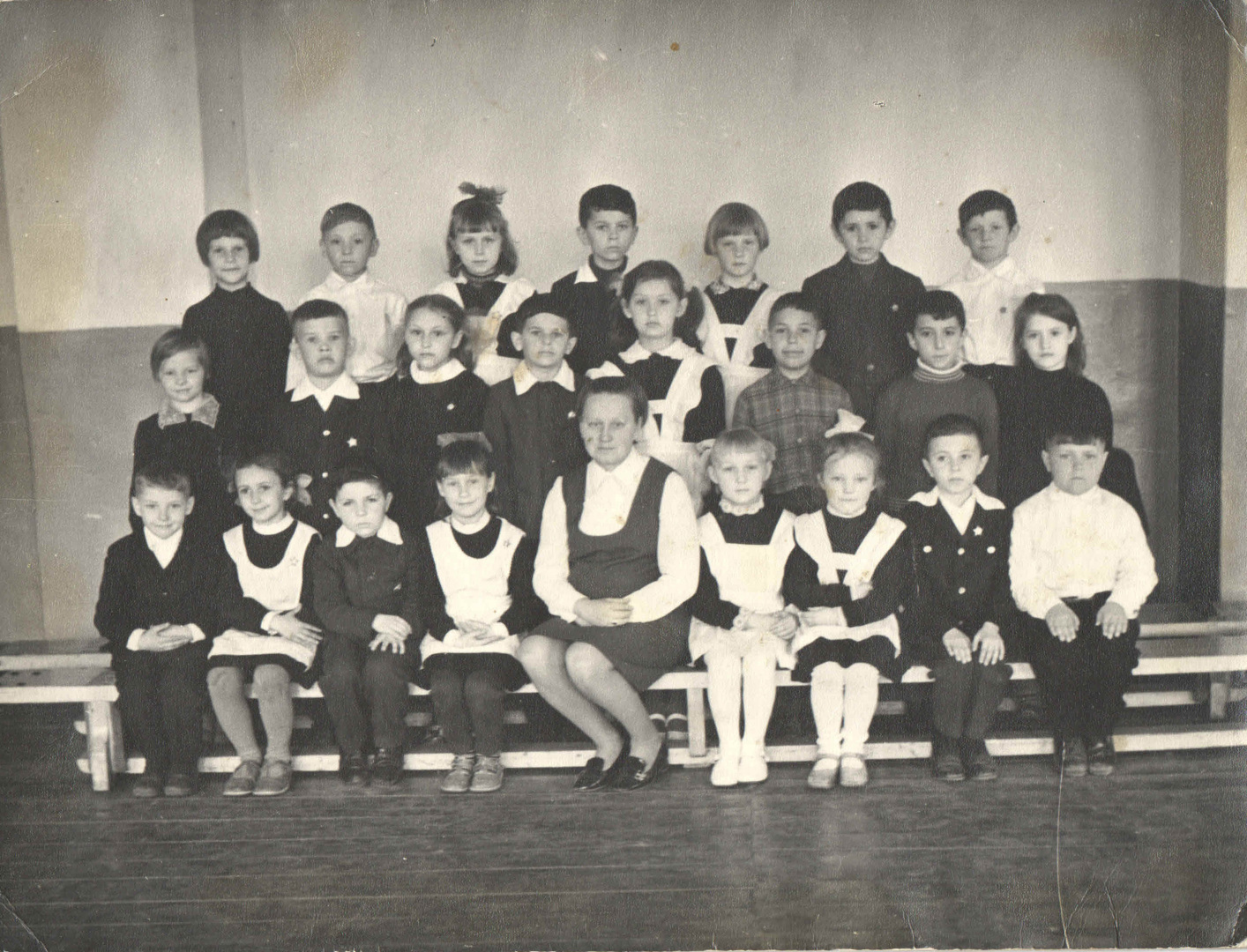 Мой 1 класс, Украина, Сумская область, п. Ямполь, 1973 год, я во втором ряду второй справа: